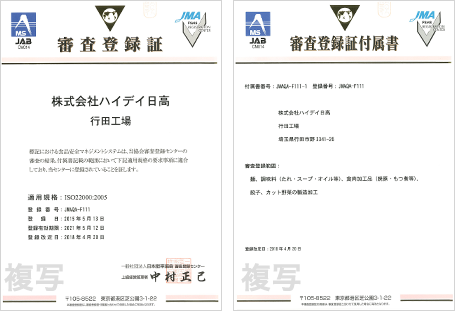 この度、行田工場が彩の国ハサップを取り入れた優良施設として、埼玉県から行田工場の全ての施設(麺類・そうざい・食肉・その他)が認められました。